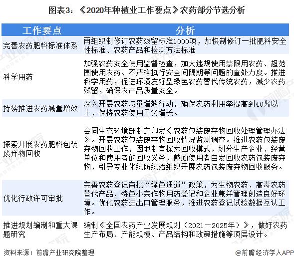 2020年2月6日農(nóng)村農(nóng)業(yè)部印發(fā)的《2020年種植業(yè)工作要點》中對農(nóng)藥行業(yè)的核心要點是確保農(nóng)藥利用率提高40%以上,其他工作要點包括對現(xiàn)有的農(nóng)藥殘留制定標準、編制農(nóng)藥發(fā)展規(guī)劃、印發(fā)農(nóng)藥包裝廢物回收辦法、為生物農(nóng)藥和高毒農(nóng)藥替代產(chǎn)品開通“審批綠色通道”。