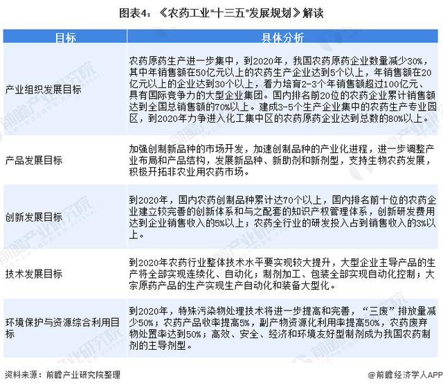為促進農(nóng)藥行業(yè)產(chǎn)業(yè)升級,工信部發(fā)布了《農(nóng)藥工業(yè)“十三五”發(fā)展規(guī)劃》。規(guī)劃提出了一系列發(fā)展目標及措施,我國農(nóng)藥工業(yè)將堅持走新型工業(yè)化道路,以創(chuàng)新發(fā)展為主題、以提質(zhì)增效為中心,進一步調(diào)整產(chǎn)業(yè)布局和產(chǎn)品結構,推動技術創(chuàng)新和產(chǎn)業(yè)轉型升級,減少環(huán)境污染,滿足現(xiàn)代農(nóng)業(yè)生產(chǎn)需求,并提高我國農(nóng)藥工業(yè)的國際競爭力。